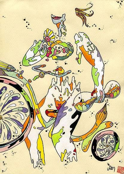 The second phase I painted around 2018 differed from the original superflat flavour by adding shadows and highlights, as well as stronger colours and varying elements in the background. The first phase was about emotions and the inner world in which they dwell, and these new works, while keeping in line with this, include wider and more complex narratives, including science.